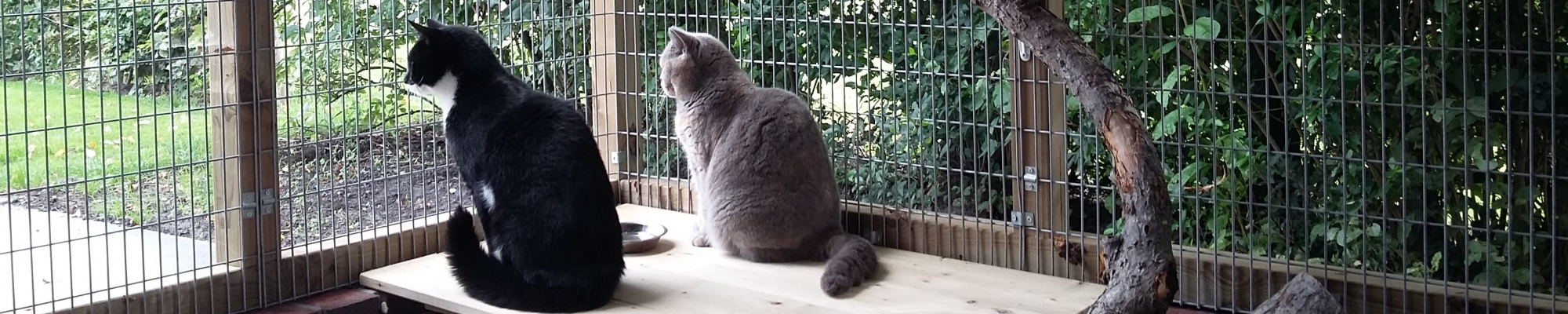 We hebben voor onze kattenlogees een zeer aangenaam kattenverblijf. Dit verblijf is apart van de honden gevestigd en bestaat uit 4 kattenkamers waarvan 3 met een buitenveranda, waardoor ze heerlijk binnen of buiten kunnen relaxen. De binnenverblijven zijn voorzien van vloerverwarming en bieden volop klim- en speelgelegenheid voor je kat.